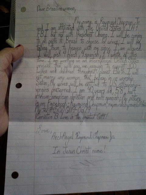 semana passada, fui conhecer algumas livrarias e sebos carioquetes (alô, livreiro do sebo berinjela, ouvi a sua história do cachorro-quente e quase te paguei 01almoço). e, claro, aproveitei para dar um oi para a biblioteca nacional (♥). os livros que me perdoem, mas as histórias que a luciana g., uma das bibliotecárias de lá, me contou roubaram toda a cena. e a melhor de todas foi a de uma carta que a biblioteca recebeu de um gringo muito louco, que, bom, fiz questão de fotografar porque não dá (gente, não dá) pra explicar com palavras, só lendo mesmo: